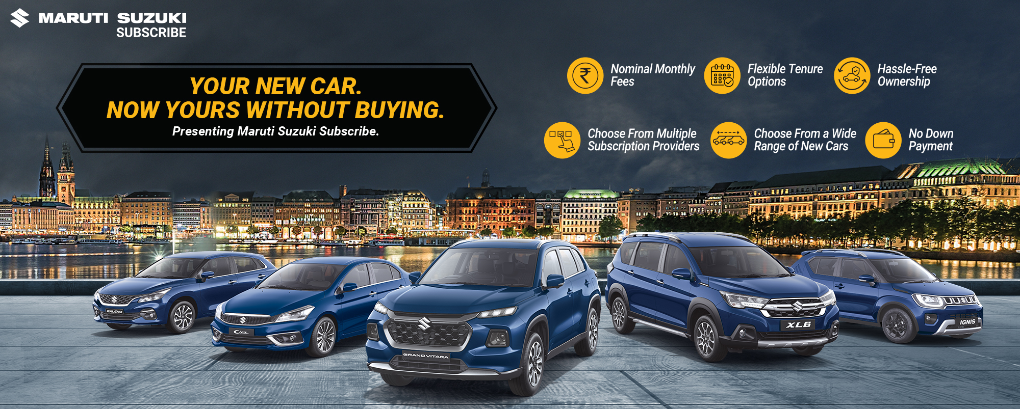 Maruti Suzuki Subscribe enables all customers to enjoy driving their preferred Maruti Suzuki cars without having to deal with all the financial responsibilities that come with owning a car.All you need to do is opt for a monthly subscription plan at a fixed monthly fee, which includes the routine maintenance and insurance costs, and choose a flexible tenure. At Kamthi Motors in, Nagpur Road, Chhindwara, all Hatchback, Sedan, SUV, the MUV models line-up includes Baleno, Invicto, EVitara, Jimny, Ciaz, Ignis, Fronx, Grand Vitara, XL6. Here, you will enjoy Maruti Suzuki Subscribe benefits such as: